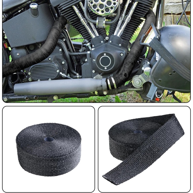 - 【Wide Application Range】Black thermal insulation tape is specially made with fiberglass. High resistance to abrasion, oil leakage, and vibration so that it can work for a long time. The exhaust heat tape can be used for wrapping outdoor pipes, heat and sound insulation of exhaust pipes of motorcycles, cars, tractors and trucks.