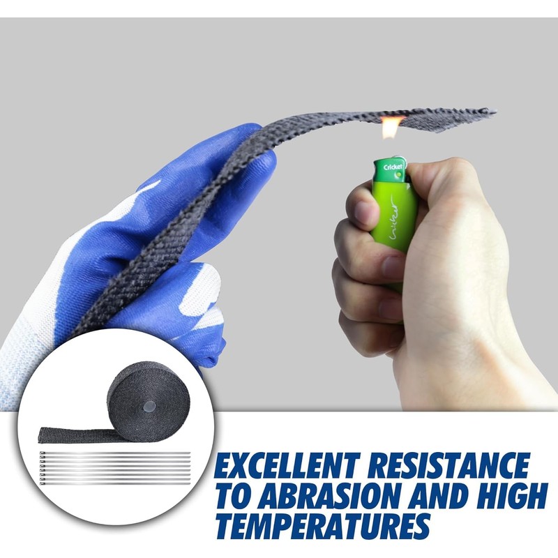 - 【Sufficient Length】 No more worrying about running out of tape for you. One 5m long rolls of thermal insulation tape are packed with 10 stainless steel zip ties to help you install easily. Just rotate and wind the exhaust repair tape onto the exhaust pipe, and then fix it with stainless steel ties to complete the installation.