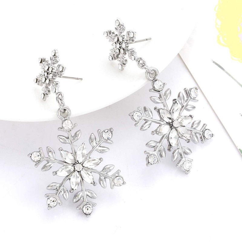 - Aretes de copo de nieve con diantes de imitación, ya sea que es celebrando vidad o simplemente el clima más frío, es aretes de gota de copo de nieve de vidad son el accesorio perfecto Cuenta con un hermoso y delicado frente de copo de nieve chapado en plata con circonita cúbica transparente. Un gran pendiente mostrar tu or por el invierno o expresar el espíritu videño.