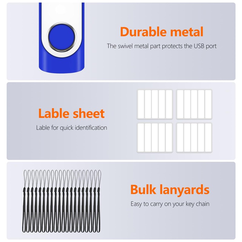 - SWIVEL DESIGN: The jump drive is 360°swivel design can effectively protect the USB interface.Lanyards are convenient to attach in keychain, backpack that can safety and easy carrying