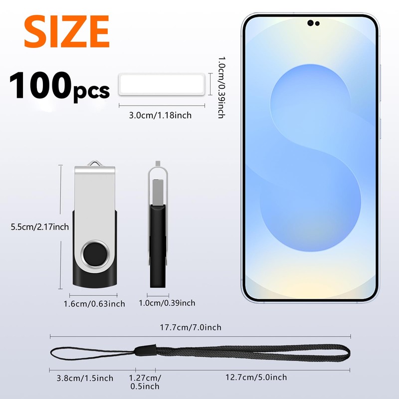 - WHAT YOU WILL GET: 100 Pack 4GB USB 2.0 flash drives bulk (Mixed Colors: Black Red Blue Green Purple) lable sheet and lanyard