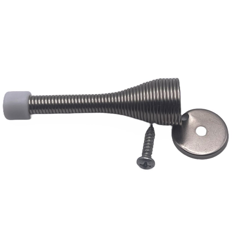 - Robust Design: These wall-mounted chrome nickel door stops are built with a sturdy spring mechanism and rubber end cap to prevent damage to your walls and skirting boards.