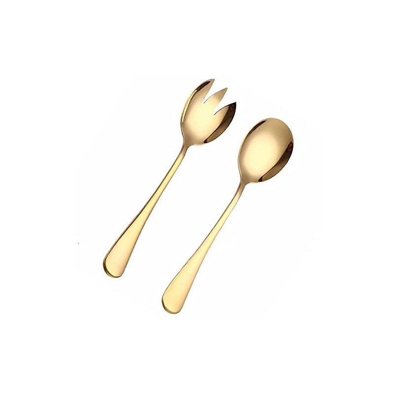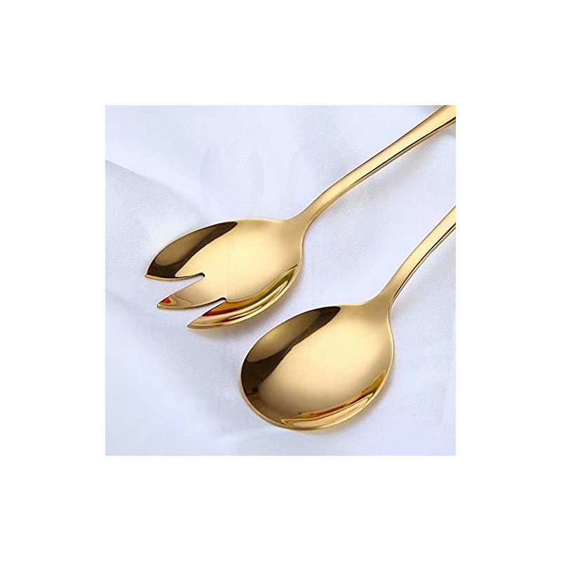 ARFUKA 2pcs Salad Servers Stainless Steel Salad Spoon and Fork Set Heavy Duty Salad Tongs Gold