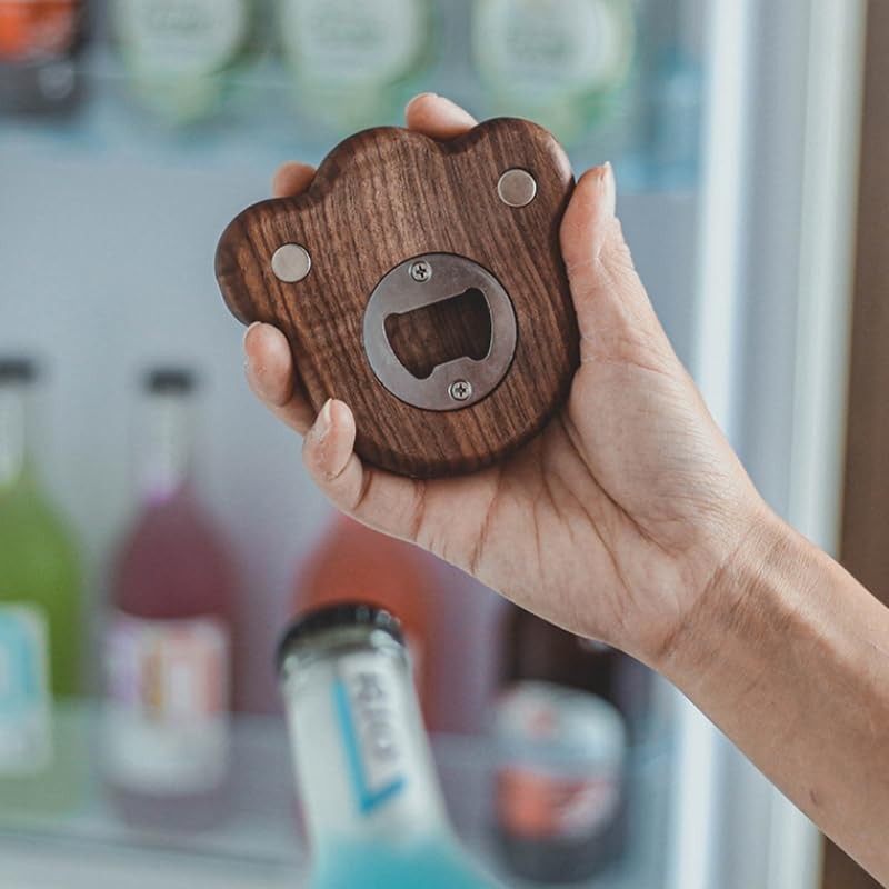 ARFUKA Bottle Opener Bottle Opener Bar Opener Bottle Cap Opener Wooden Cat Foot Beer Opener Stick to Refrigerator for Easy Storage