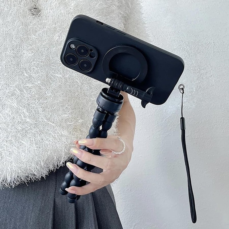 - Silicone-wrapped legs twist, wrap, or stand upright on surfaces (tables, poles, trees) for 360° angle adjustment and stable shots