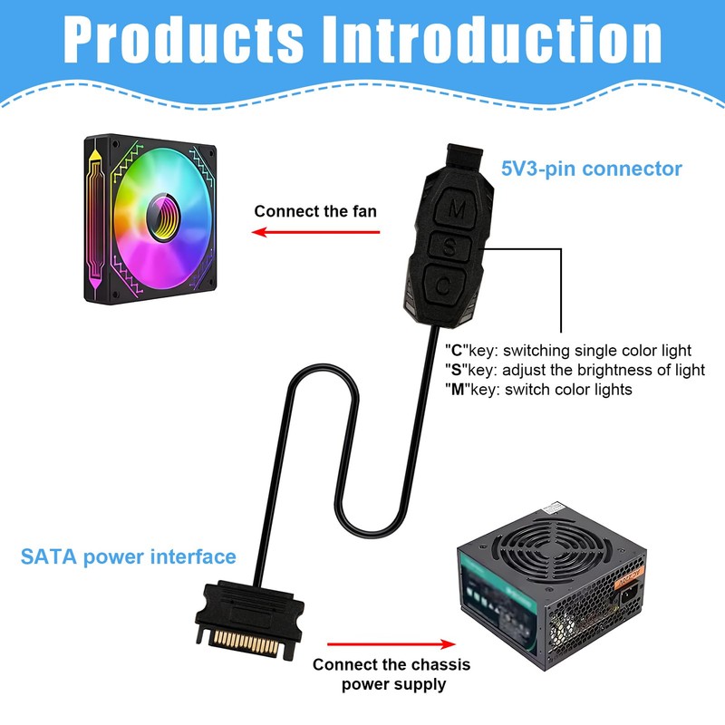- 【SATA Power Supply】Powered by SATA, this ARGB controller ensures stable operation without the need for additional adapters, compatible with most desktop configurations.