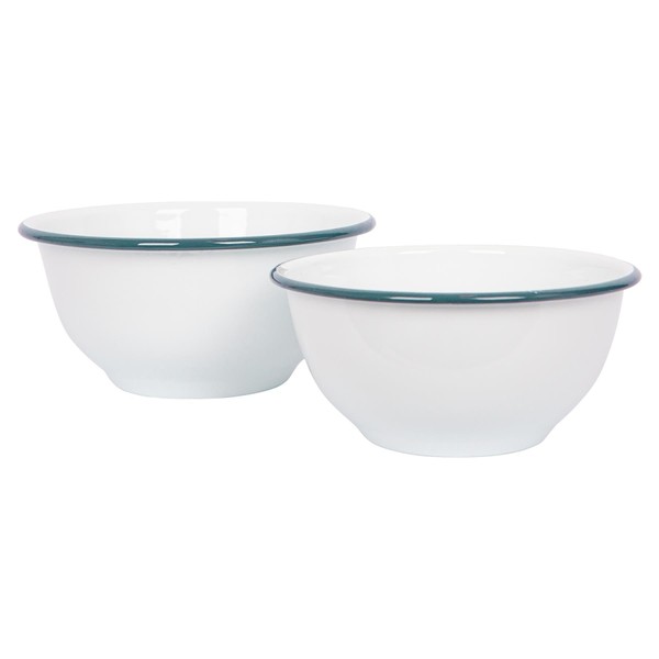 Argon Tableware 2pc Green White Enamel Mixing Bowl Set - Deep Metal Nesting Kitchen Baking Cooking Salad Easy Storage Food Bowls