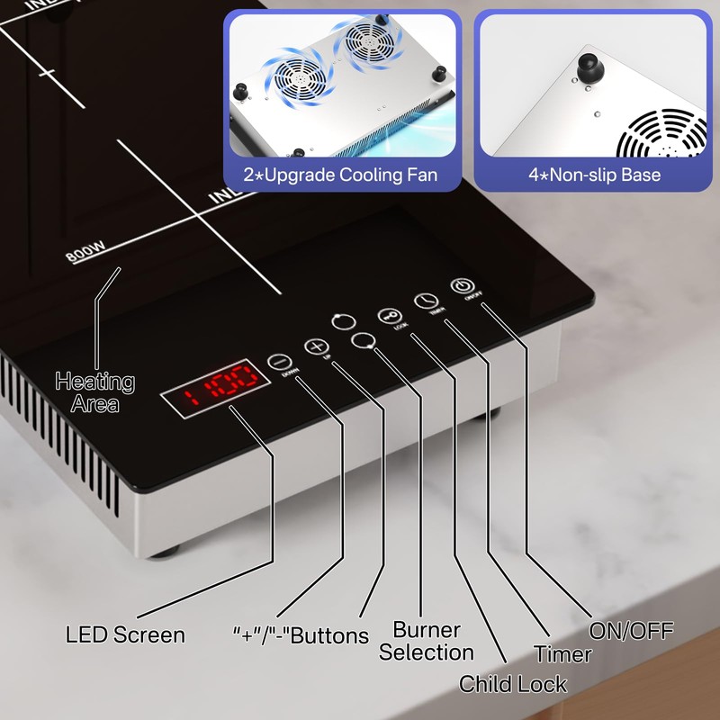 - 🌟 【Advanced Safety Features for Worry-Free Cooking】 Designed with safety in mind, the Argyolas induction cooktop features child lock, overheat protection, and automatic pan detection. It automatically shuts off when no pan is detected, ensuring peace of mind every time you cook.