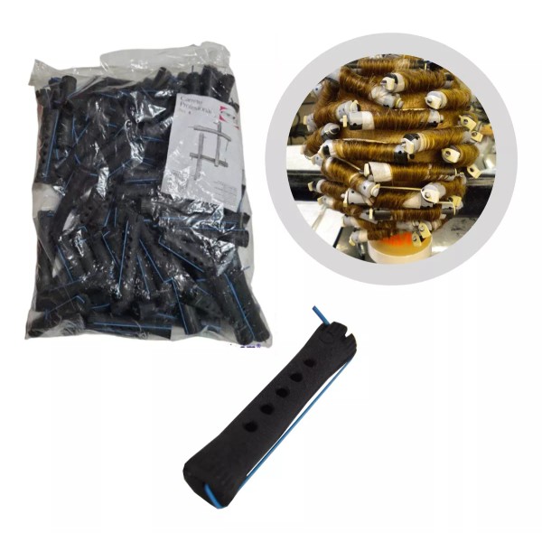 (la cantidad varia según el tamaño del carrete). El carrete tiene una función muy importante para el ondulado permanente. Es el que determina el tamaño y forma de la onda y no la potencia del líquido ondulante. El Carrete es el material sobre el que se enrolla el cabello para que se ondule. Los de forma plana, cuadrada, triangulan realizan la misma función, tienen el mismo principio. Al terminar una permanente, sólo hay que lavarlos, enjuagarlos y secarlos con toallas o papel absorbente y se deben guardar en un lugar seco. Utiliza papel punta para el proceso de ondulado permanente.