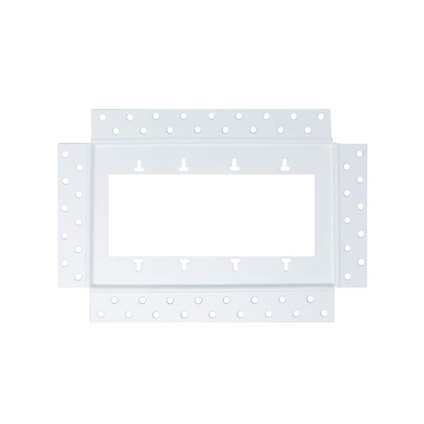 Integrate wall plates (light switches, outlets etc.) flush to the wall surface. Drywall bead rim contours the Receptacle Mount to have a continuous, smooth surface. Install is best done by a Pro. *Wall plate not included - Compatible with SELECT wall plate models and sizes. FAQS: Are these sold in multi packs? No. Receptacle Mounts are sold in single quantities. Is the wall plate included? No. Wall Plates must be purchased separately. The Receptacle Mount is designed to be compatible with recommended brand wall plates (Leviton, Lutron, Eaton) Are there restrictions of wall plate sizes? Yes! See DETAILED DIMENSIONS for compatible wall plate sizes. Does this require any electrical prep work? Yes! Some preparation to receptacle box is required (See step 1 of INSTALL GUIDE) Can I use this for any receptacle style? Yep! The Receptacle Mount is designed for light switches, outlets, ethernet and phone electrical boxes. Manufactured in Canada