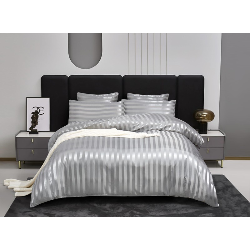 Arianaut Duvet Cover Full Size Grey 5 Pieces Satin Full Duvet Cover Luxury Coquette Silk Like Striped Duvet Cover Grey Bedding Set Comforter Cover with Zipper Closure 1 Duvet Cover 4 Pillow Cases
