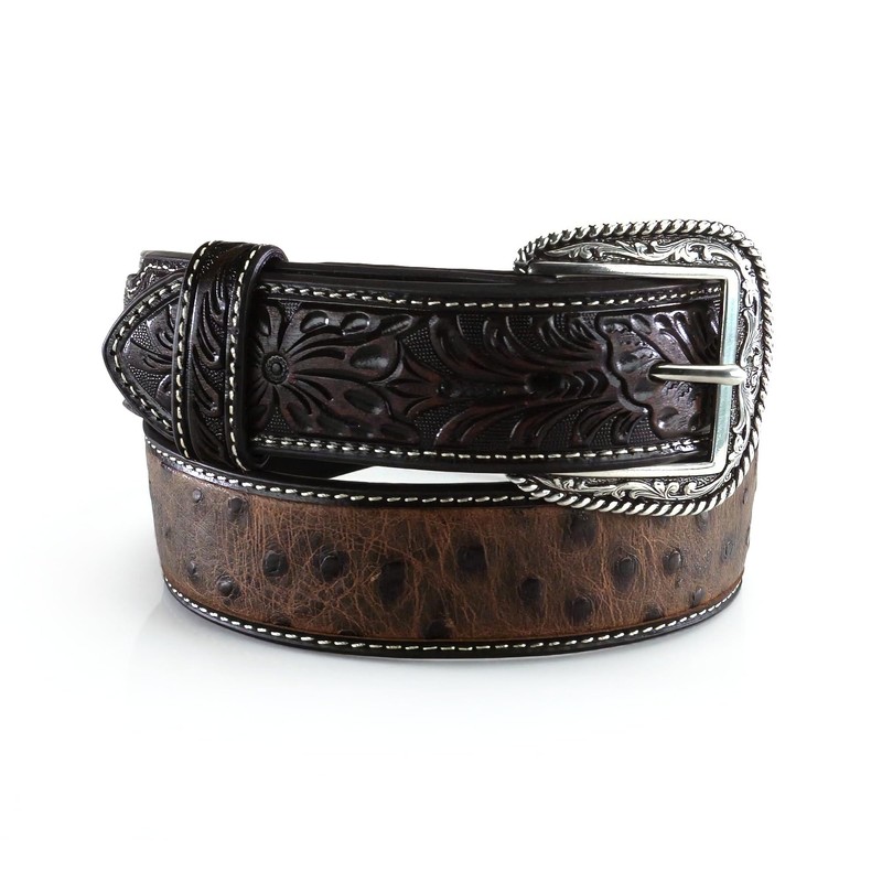 ARIAT Men's Ostrich Print Belt, Brown, 42