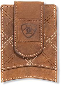 Ariat Western Mens Money Clip Cross Stitched Embossed Patch Brown A3563244