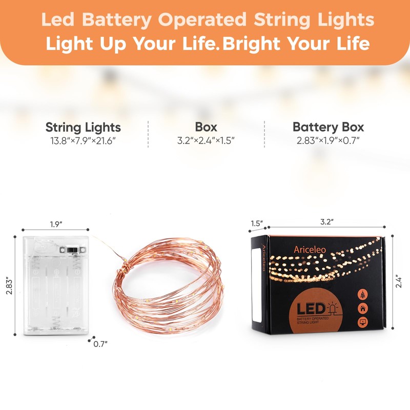 Ariceleo Upgraded LED Fairy Lights, 1 Pack 16ft Warm White with Timer and Synchronized Twinkle Mode, Battery Operated String Lights, Separately Boxed, 50 LEDs, Idea for Christmas Bedroom Party Wedding