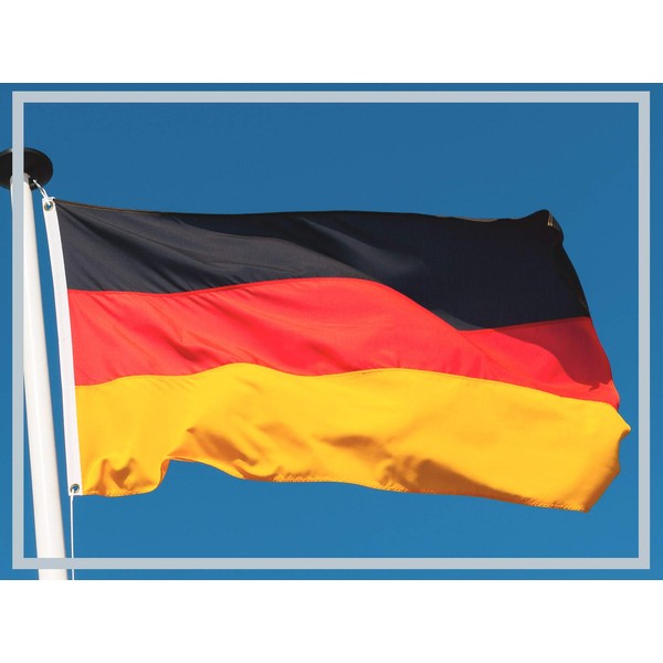 The Germany flag is made from 100% polyester and has two integrated brass eyelets. It has a size of 250 x 150 cm and weighs about 118 g including packaging.