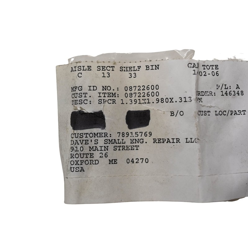 Ariens Spacer 1.391 x 1.980 x .313 Part Number: 08722600