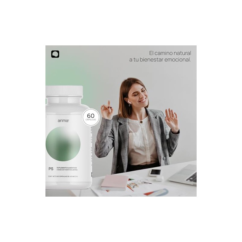 ARIMA - PS Fosfatidilserina 60 Cápsulas, 410 mg - Suplemento Alimenticio Natural para Memoria, Concentración y Manejo de Estrés - Suministro para 1 Mes de Bienestar General