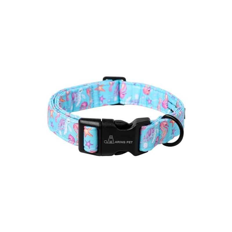 ARING PET Summer Dog Collar-Cotton Lightweight Blue Dog Collars, Adjustable Seahorse Turtle Pet Collar Puppy Collars with Quick Release Buckle for Small Medium Large Dogs