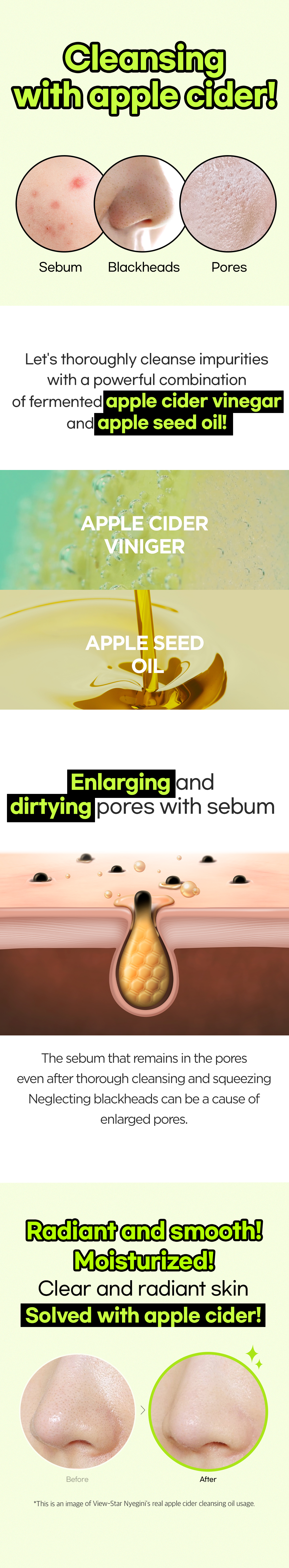 Apple cider vinegar helps cleanse pores and control excess sebum. Pyrus Malus (Apple) Seed Oil mindly washes away blackheads and sebum.