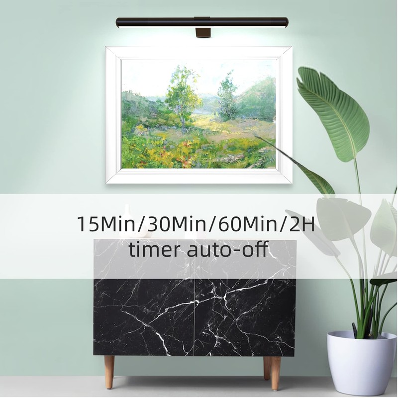- 【Timer preset and Magnetic attach】The timer function can be used by remote control, 15min/30min/60min/2H timer auto-shut OFF. The picture light bar is magnetically attached to the bracket, easy take down to recharge or as a night light flash light, book reading light in bed.