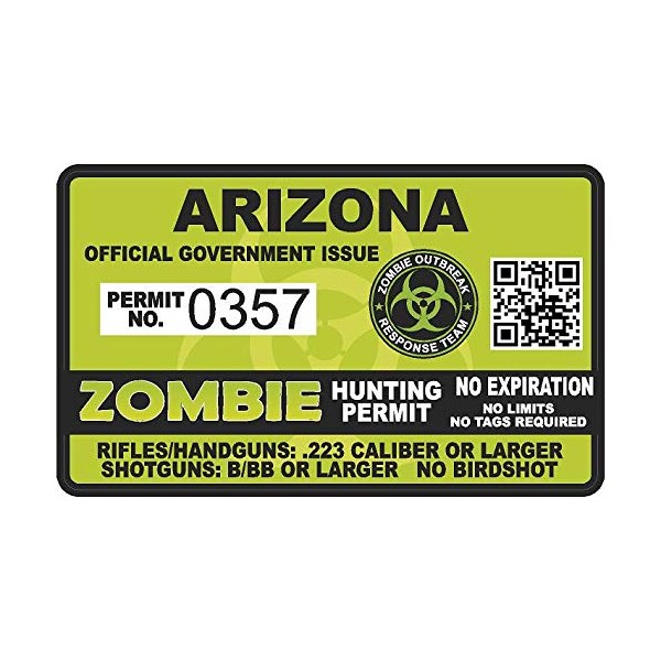 • Arizona AZ Zombie Hunting Permit - Hunter response biohazard team Unit 4" Outbreak Sticker