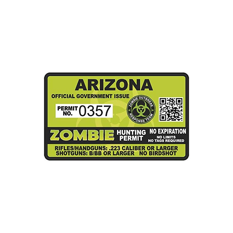 Arizona AZ Zombie Hunting Permit - Hunter Response Team Unit 4" Outbreak Sticker
