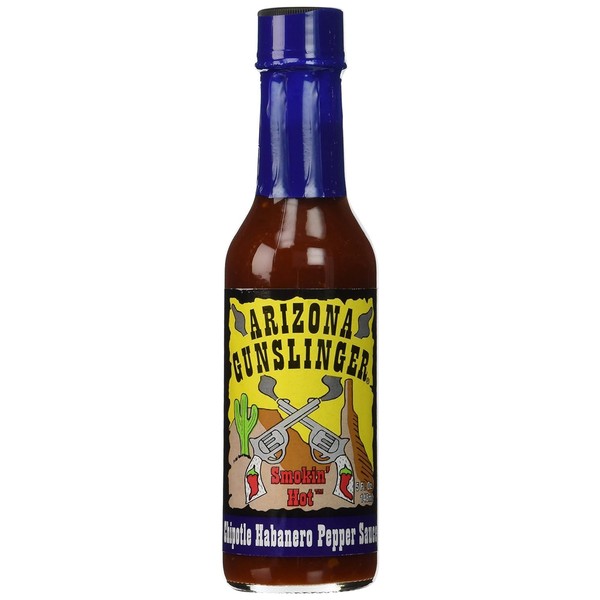 Arizona Gunslinger Chipotle Habanero Pepper Sauce – Smoky Hot Sauce Bottle, No Calorie Marinade & Salsa for Tacos, BBQ, Grilled Meats & Dips, Real Habanero Peppers and Bold Chipotle Flavor - 5 Fl Oz (Pack of 1)