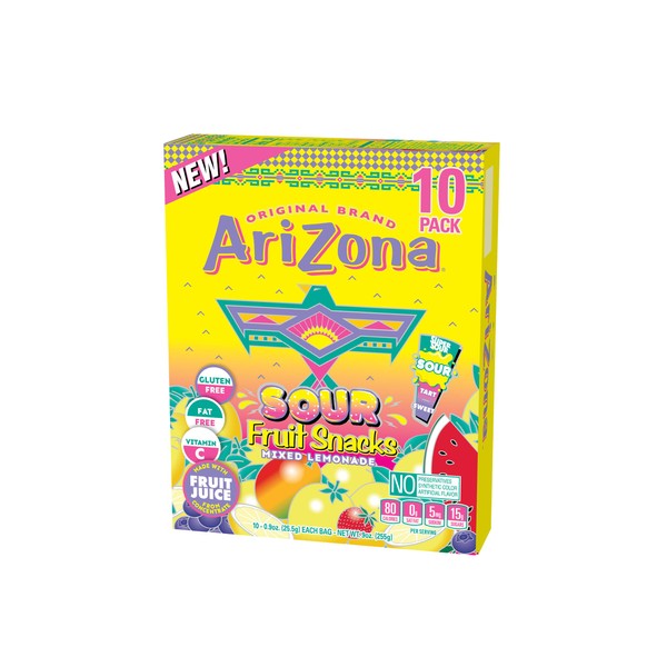 AriZona Lemonade Fruit Snacks, Sour Lemonade - 0.9 oz, 10 count Box