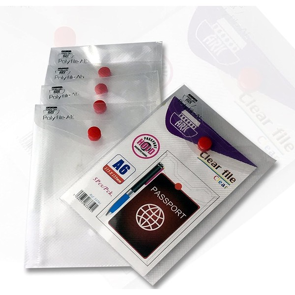 ARK Carry File Popper Wallet File with Press Stud Closure [Pack of 5] (Clear, A6)