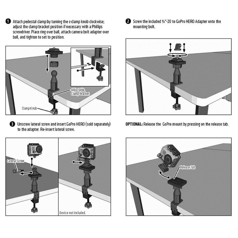 ARKON Clamp Mount for GoPro HERO Action Cameras Retail Black