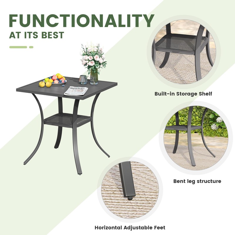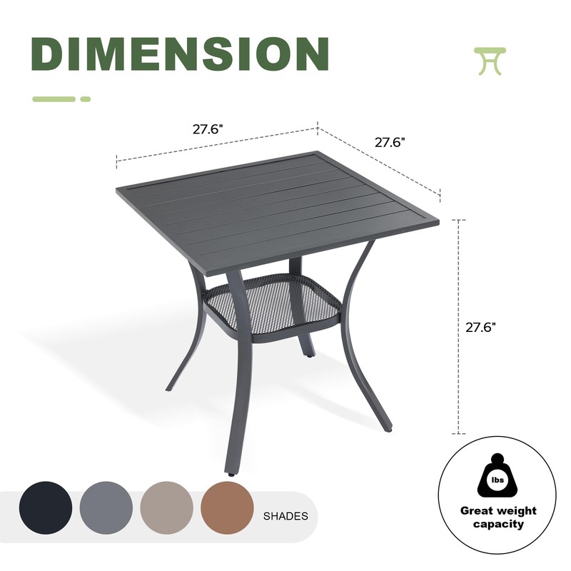 - Small Bistro Table: The table sizes 27.5"x 27.5"x 27.5", ideal for enjoying the outdoors at a leisurely pace
