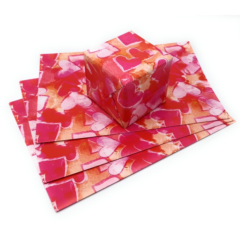 ARKRAFT Gift Wrap 3 Sheets A1 FSC Product Plastic-Free Packaging Red Hearts Valentine's Day (18-8854)