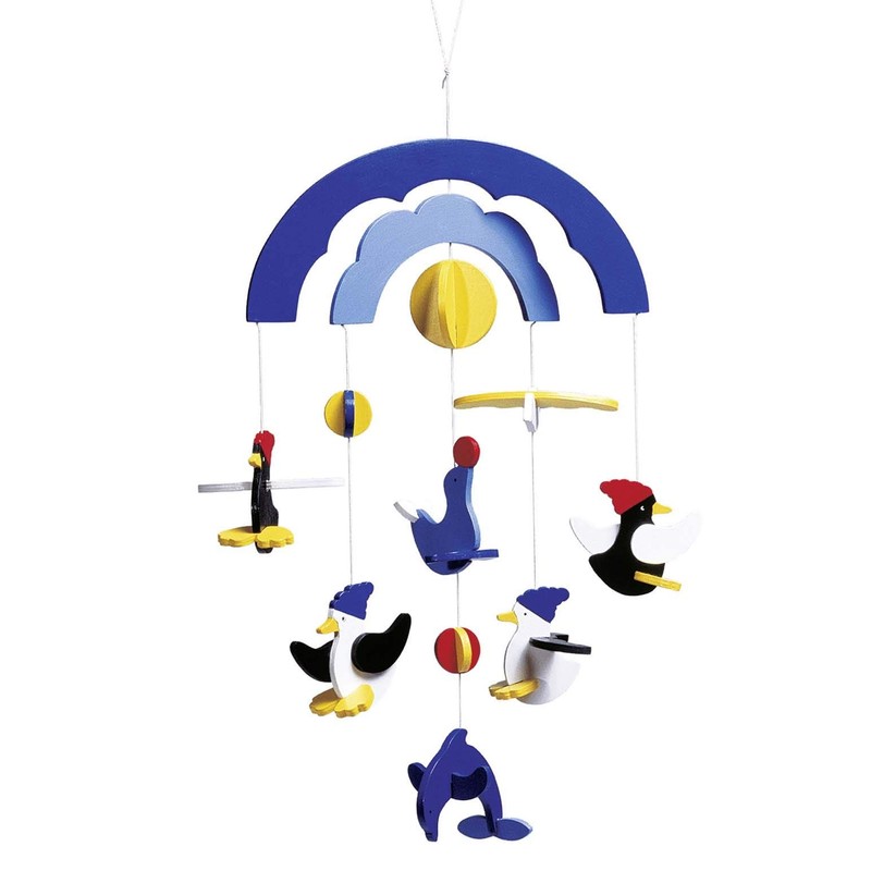So that the penguins and dolphin of the Arctic mobile dance in the waves, a light draught is enough. It is always fascinating for big and small people to observe the movements of the figures. This effect is highlighted by the 3D design of the figures. This mobile is great over the changing table, the cot or simply as a children's room decoration.