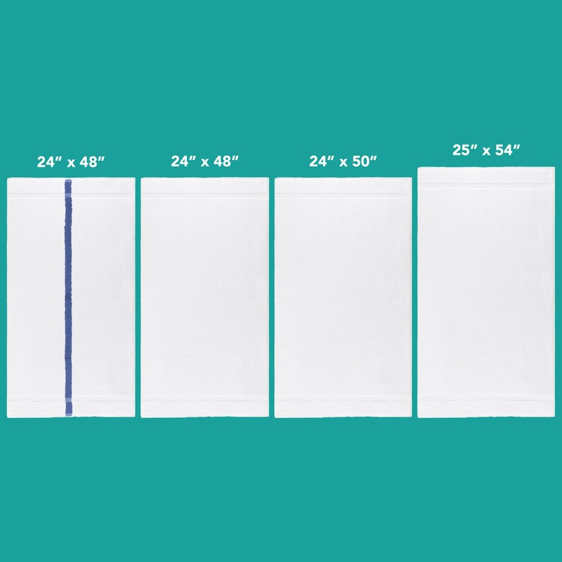 Choose from three sizes of bath towels to suit any budget. Carton-packed and ready to use right out of the box, these towels save time and money on labor, pressing, and re-folding.