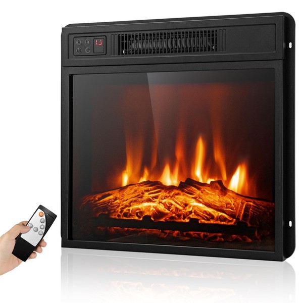 ARLIME 18” Electric Fireplace Insert, Small Recessed Firebox Heater w/Realistic Flame Effect, Adjustable Brightness, Timer, Remote Control, Wall Mounted Fireplace, 1400w, Black