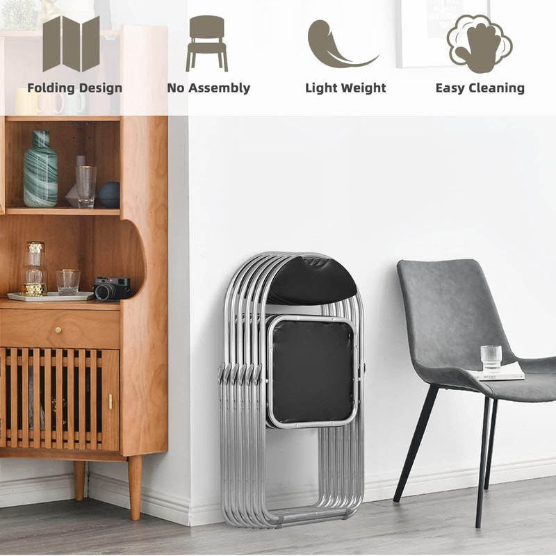 - 【4 pack Folding Chairs】: The foldable chairs come with non-slip pads, which not only ensure your safety, but also effectively protect your floor from scratches. In addition, the black metal folding chair is suitable for any space, such as office, school, courtyard, living room.