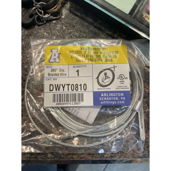 Arlington Industries DWYT0810, Wire Grabber Kit, 10' w/ 2 Toggles, Rated 75#