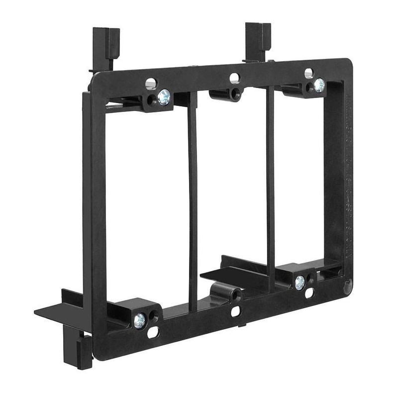 - Adjusts to fit 1/4 to 1 in thick wallboard, paneling, or drywallNon-metallic better than metal and costs less tooBracket is its own template for cutoutMounting wings hold bracket securely against wall when screws are tightenedSingle through 4-gang brackets for installations on existing construction, designed to install low voltage class 2 onlyBlack color