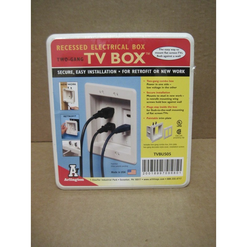 Arlington TVBU505 Two-Gang Paintable Recessed Electrical Box
