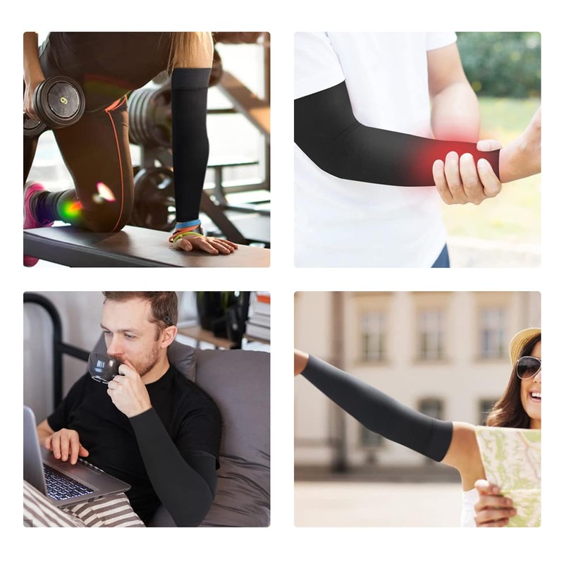 • FASTER RECOVERY: Bring you well designed compression sleeve for arms men and women that provides graduated compression from the wrist to bicep. Therapeutic compression arm sleeve can promote blood circulation, ideal for the treatment and relief of varicose and spider veins in the arms, lipedema in the arms, lymphedema, arthritis, tendonitis, arm injuries, pain in bicep.