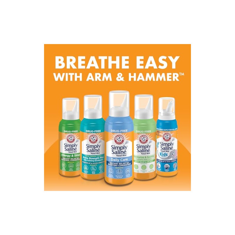 Arm & Hammer Simply Saline Nasal Mist delivers instant congestion relief any time, day or night. Featuring an effective and drug-free formula. The gentle formula flushes out irritants and moisturizes dry nasal passages related to allergies, colds, flu and sinusitis