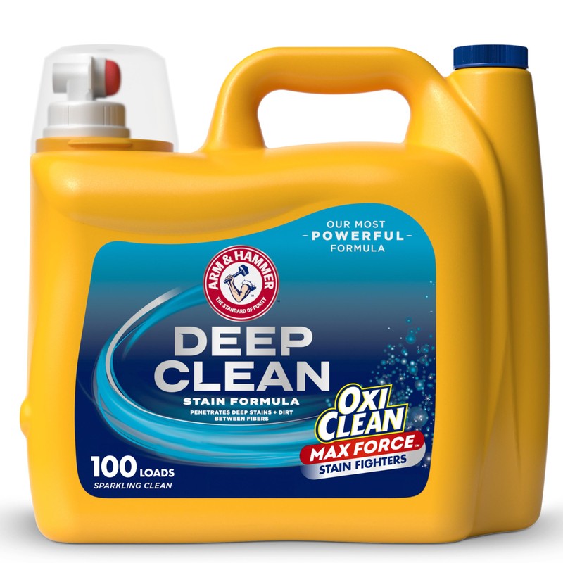 - Powerful Laundry Stain Remover: 150 fl oz bottle of ARM & HAMMER Deep Clean Stain Formula Liquid Laundry Detergent, Sparkling Clean Scent for a powerful clean with advanced stain removal technology
