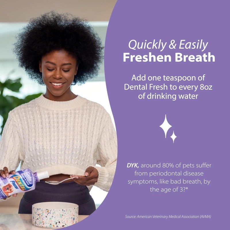 - FRESHENS BREATH –By targeting buildup in hard-to-reach places this dog dental water additive makes your pet's mouth an unwelcome place for bacteria and helps freshen their breath.