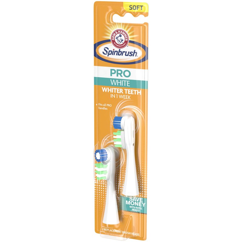 Arm & Hammer Spinbrush Pro Series White Battery Toothbrush Refills (Replacement Heads), Soft, 2 Count