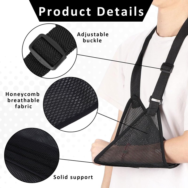 - ADJUSTABLE STRAPS Our arm sling right arm comes with adjustable straps, allowing you to adjust the length and firmness of the straps to achieve the most comfortable and suitable fit. Whether you have a right or left arm, this sling offers you the right support.