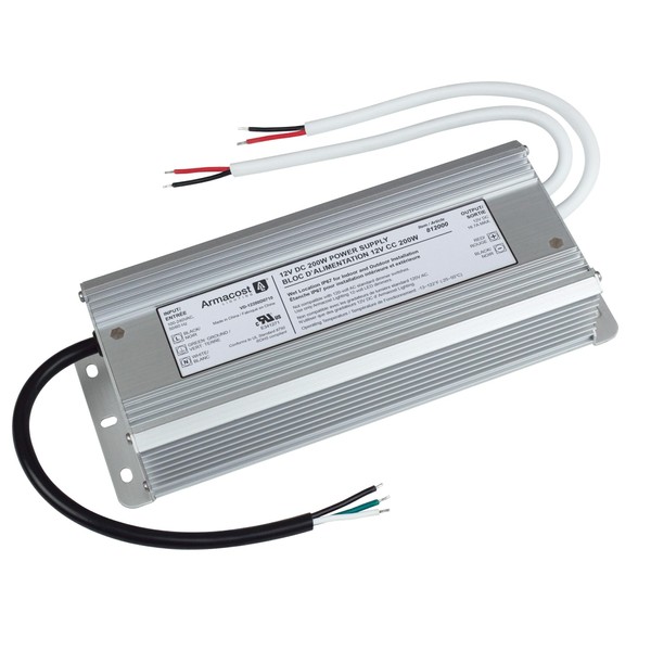 The Armacost Lighting’s 200 Watt; 12 Volt Standard LED Power Supply delivers stable and energy-efficient, low-voltage power to any LED lighting installation. The LED driver is designed using high-performance, professional grade electronics that provide stable and efficient low-voltage power. The power supply is rated up to 200-wats at 12-volts. No minimum load required. The power supply must be hardwired. Rated for both indoor and outdoor use. For best results use Armacost Lighting LED products.