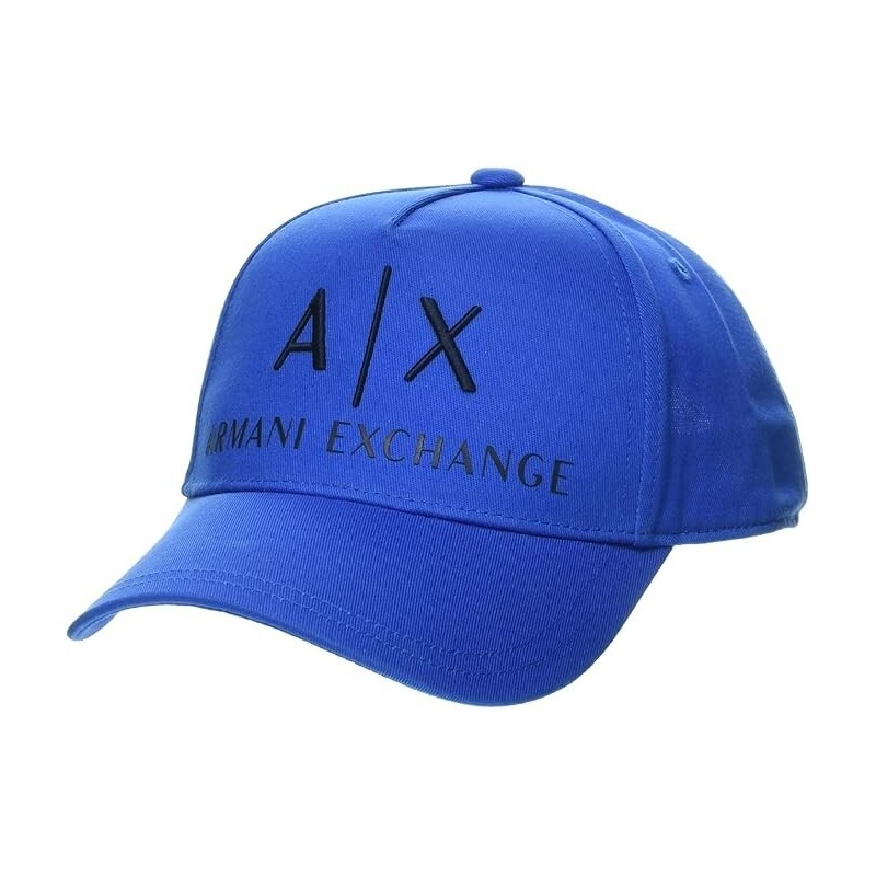 The Armani Exchange Men's Corporate Logo Cotton Baseball Hat features a solid blue design with the brand's logo prominently displayed. Made from cotton, this one-size-fits-all hat is perfect for men looking to add a stylish accessory to their wardrobe. The hat is from Armani Exchange and is designed in a classic baseball cap style, making it a versatile and on-trend option for casual wear. Made in China, this hat is a new addition to the collection, offering both comfort and branded style for everyday use.
