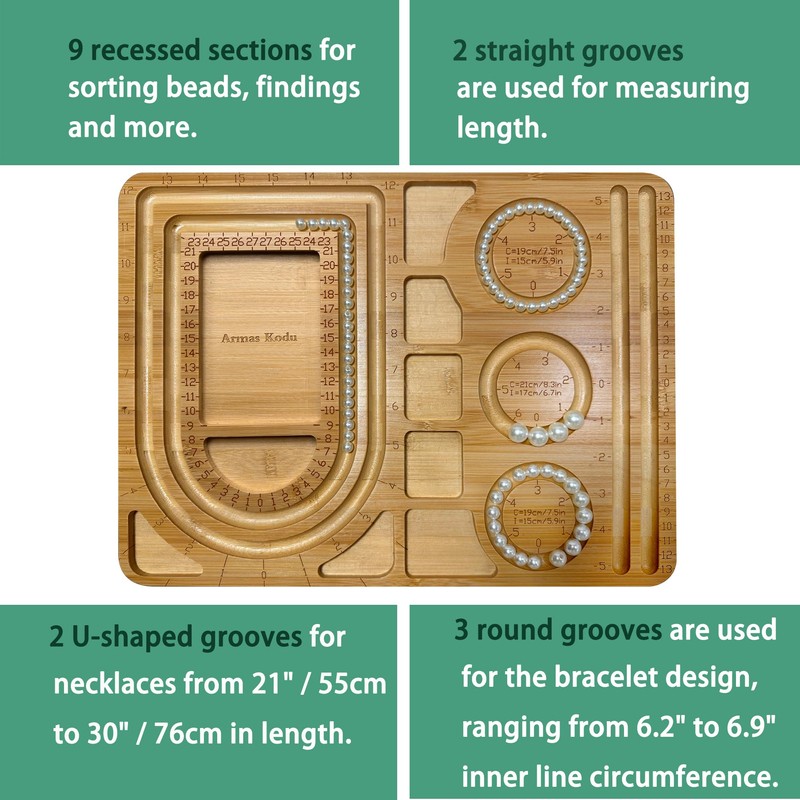 Armas Kodu Bamboo Bead Board for Jewelry Bracelet Necklace Making, Deeper Grooves in 0.5’’ Width and 0.25’’ Depth, 15.4 x 11.4 x 0.6 inch Beading Design Tray