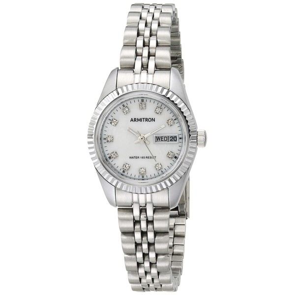 Armitron Women's Genuine Crystal Accented Day/Date Function Bracelet Watch, 75/2475,Silver