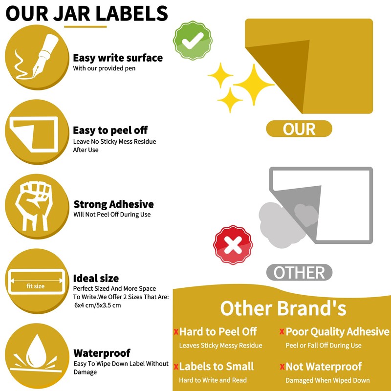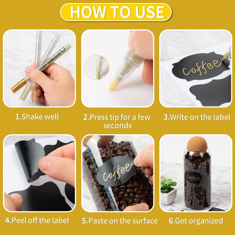 - 【 Dekoration und Organisation.】 Verleihen Sie Ihrer Küche und Ihrem Speisekammer einen warmen, Vintage-Ton! Mit unserenGoldenen Stiften, Egal ob es sich um hausgemachte Lebensmittel oder den Wein handelt, den Sie nach Hause bringen und um Geschenkkisten. Diese tafelsticker etiketten sind perfekt für die Dekoration.